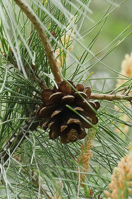 ![]() 老木は枝を水平に張り出して傘形の樹冠になる。 2024.5.24 東京都八王子市![]() 雄花は新枝の基部に多数つく。 2019.5.9 川崎市多摩区![]() 2年目春の球果。 2019.5.9 川崎市多摩区![]() 3年目春の球果。2年目秋に熟して種子を落としても、さらに1年以上枝に残る。 2019.5.9 川崎市多摩区![]() 葉は2個ずつ束生し、基部は膜質で褐色の鞘で被われる。葉先に触っても痛くない。 2024.5.30 神奈川県秦野市![]() 樹皮は赤褐色で、老木になると亀甲状に裂ける。 2018.2.6 横浜市南区 |