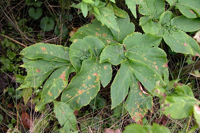 ![]() 茎は赤紫色を帯びて太い。 2001.9.22 青森県三厩村![]() 裂片の先は鋭くとがる。 2002.9.16 青森県東通村 |