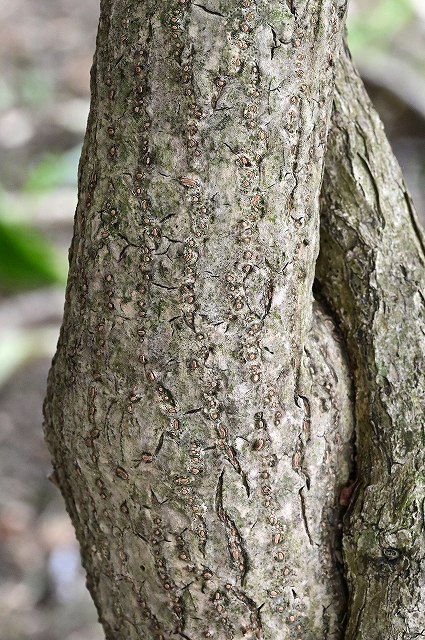 ![]() 雄花。花弁状の幅の広い萼片3個と狭い萼片3個が2列に並ぶ。 2015.4.16 横浜市中区![]() 雌花。太い3個の花柱が目立つ。 2015.4.16 横浜市中区![]() 葉は5または7小葉。ときに3小葉。 2020.4.22 横浜市中区![]() 若い果実。秋に紫色に熟すが裂開しない。 2021.9.16 神奈川県茅ヶ崎市![]() 樹皮は灰褐色。浅く裂け目がある。 2023.2.8 神奈川県鎌倉市 |
