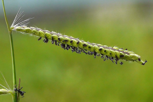 ![]() 小穂の先がとがり、垂れ下がった葯は紫黒色。 2015.10.6 横浜市中区 |