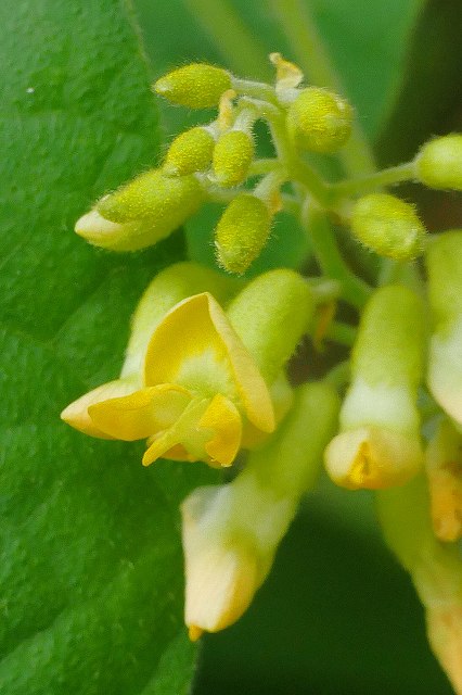 ![]() 花は長さ1cmほど。萼に伏毛と腺点がある。 2017.8.28 横浜市戸塚区![]() 小葉の最大幅は基部寄りにある。先は細くなってとがる。 2022.10.28 横浜市緑区![]() 葉の裏面に黄褐色の腺点がある。 2022.10.28 横浜市緑区![]() 若い豆果。先端がとがる。表面の毛は少ない。 2017.10.2 横浜市栄区![]() 紅色に熟した裂開前の豆果。微毛があるがほとんど残らない。 2016.11.16 横浜市戸塚区![]() 裂開した豆果。光沢のある種子が果皮について残る。樹木のゴンズイに似る。二色効果で鳥に散布を頼るタイプなのだろう。 2017.11.29 横浜市栄区 |